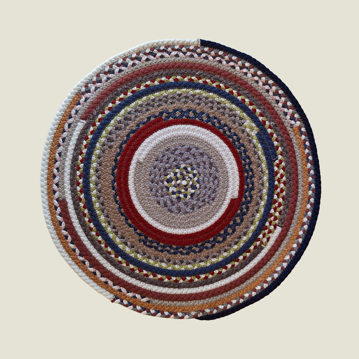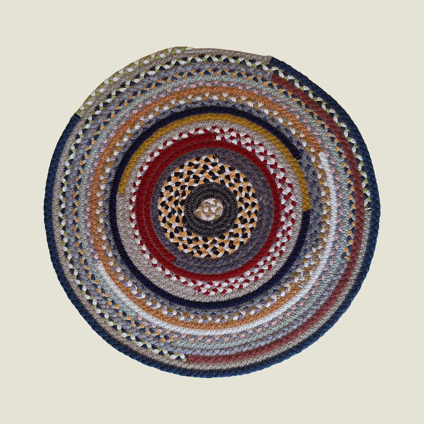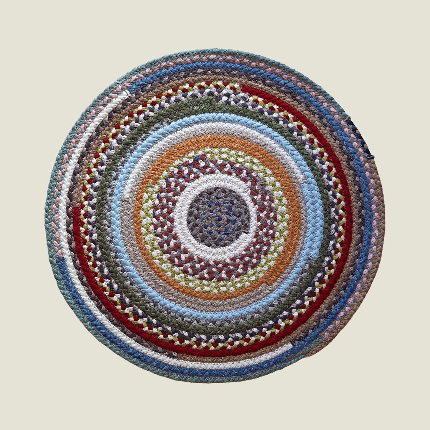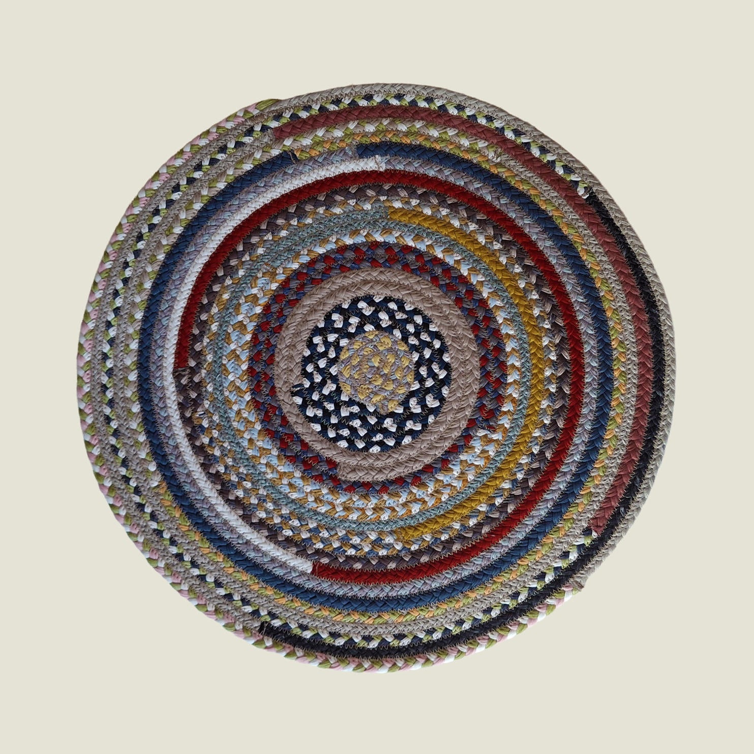 Handcrafted in Portugal with up-cycled textile industry offcuts, these vibrant braided cotton placemats are both eco-friendly and functional. Measuring 40 cm in diameter, they serve as both placemats and decorative trivets, safeguarding surfaces while adding a pop of colour to your table. Resistant to heat from dishes and beverages, these placemats are a necessity for any dining occasion. Each one is unique due to the use of offcuts in production.