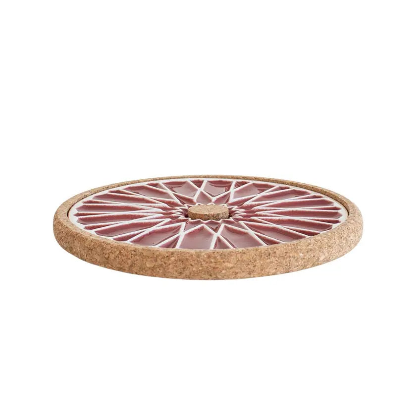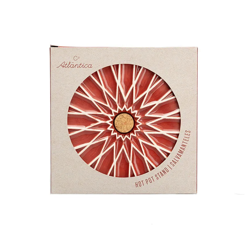 This ceramic hot pot stand Alicatos in red boasts a relief pattern and cork base, drawing inspiration from traditional Portuguese tiles. With a history of cultural exchange and artistic expression spanning five centuries, Portugal's iconic tiles hold a unique status as both decorative and architectural pieces.