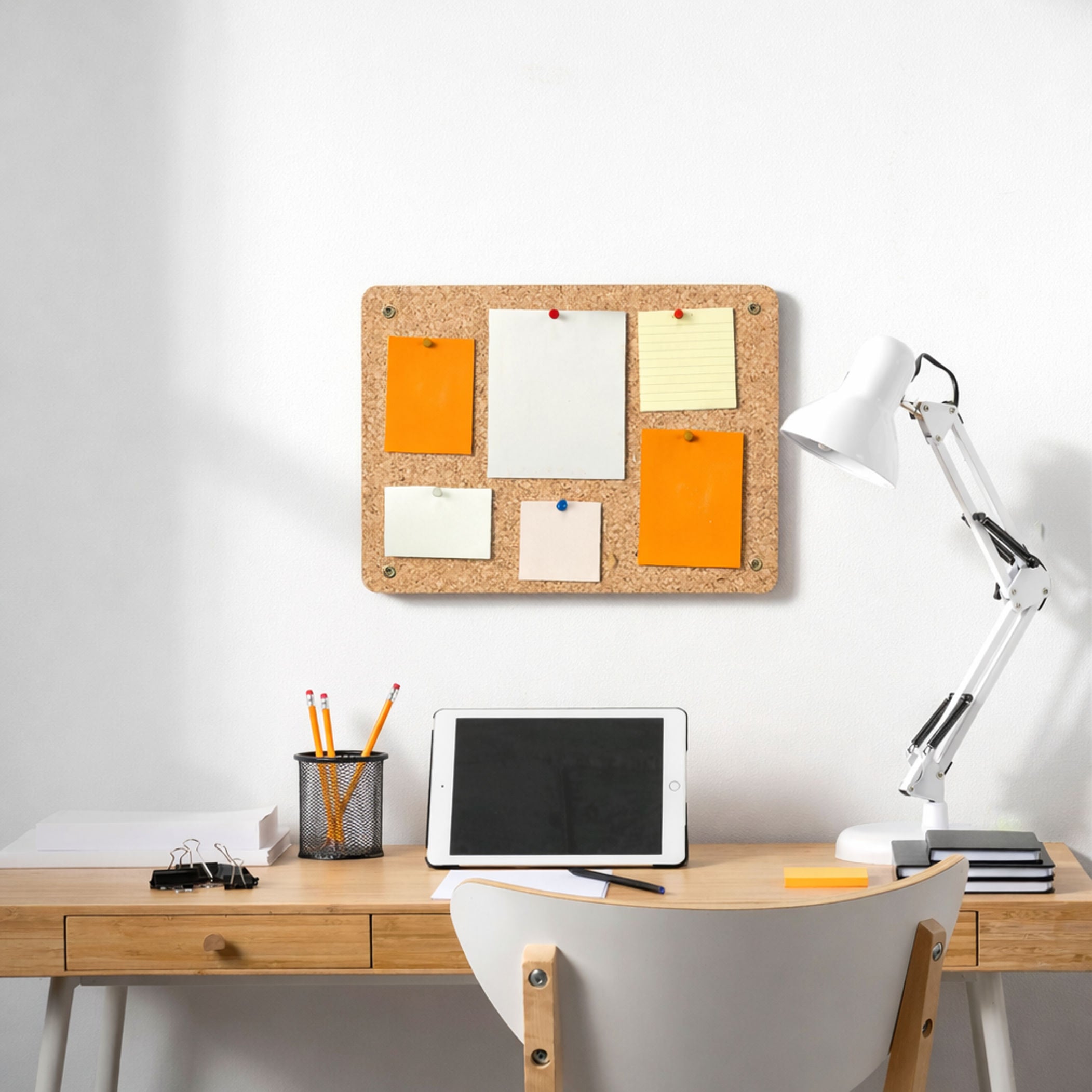 This small, thick cork notice board possesses a modern aesthetic, thanks to its rounded edges, making it the perfect accessory for any home or office setting. Complimentary fixings are included, allowing for straightforward installation.