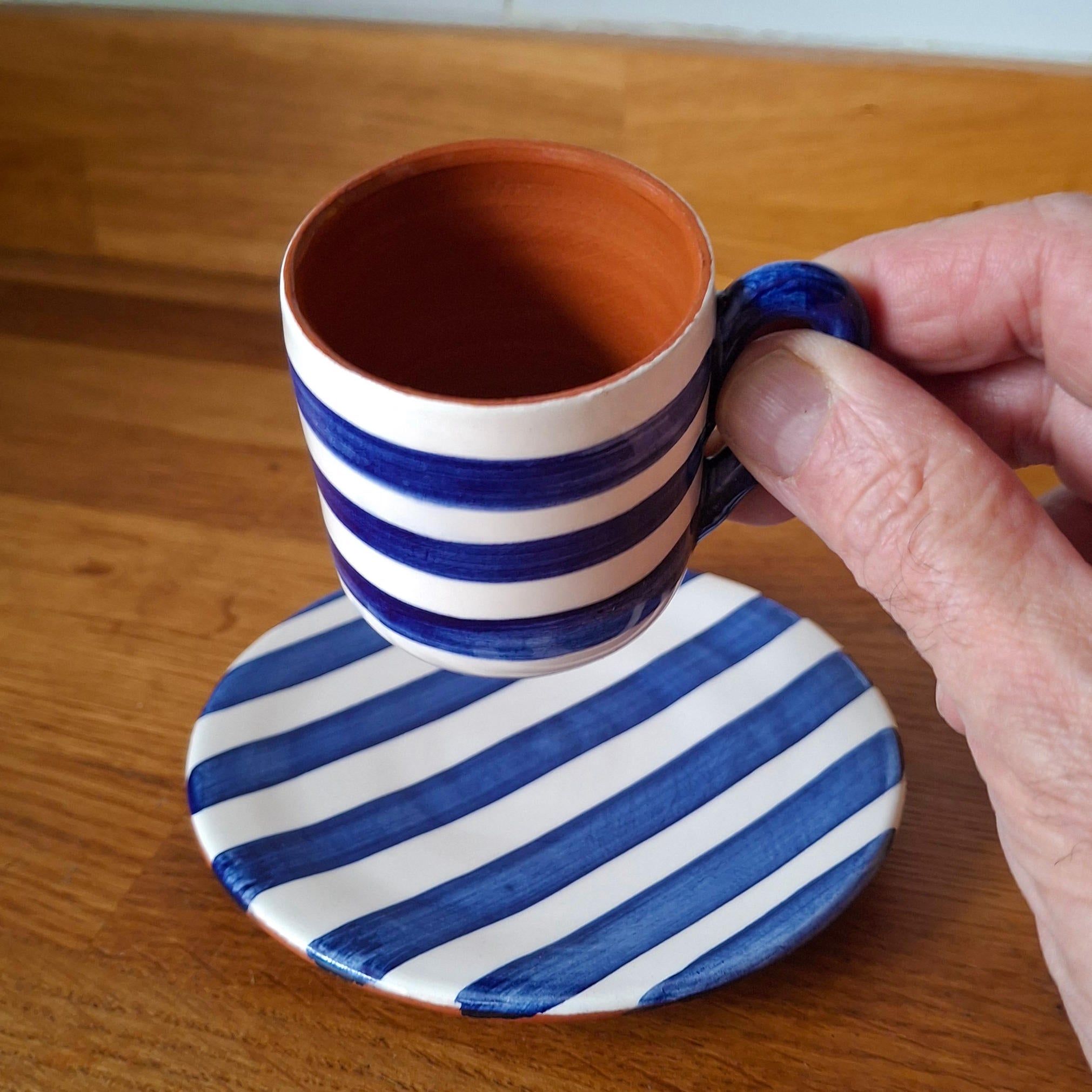 Terracotta Espresso Coffee Cup & Saucer Bold Stripes | Blue