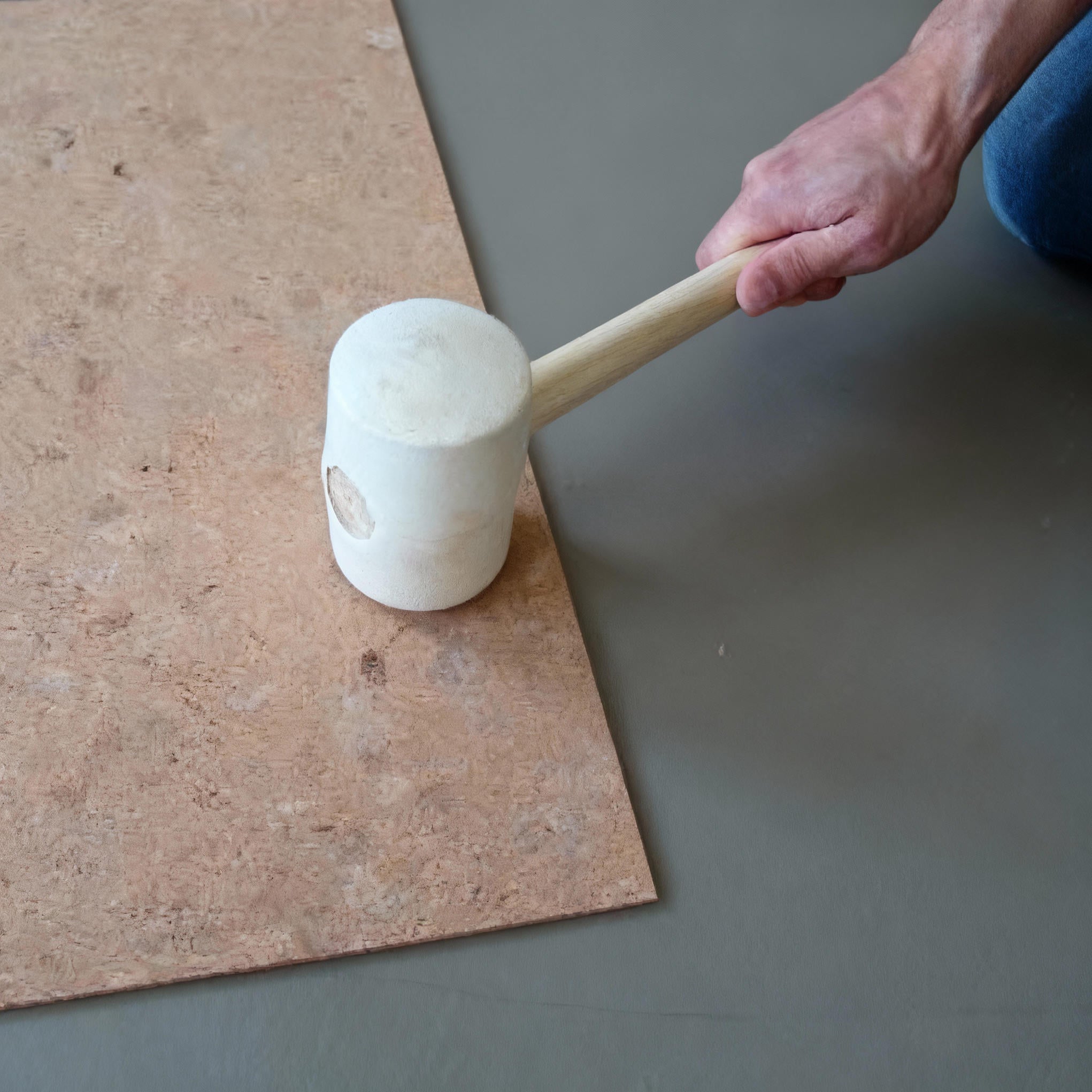 A rubber mallet is employed to securely set cork tiles onto adhesive-coated floors or walls, guaranteeing strong contact between the tile and substrate. Applying the mallet carefully to each tile, especially around edges and corners, is vital for proper installation.