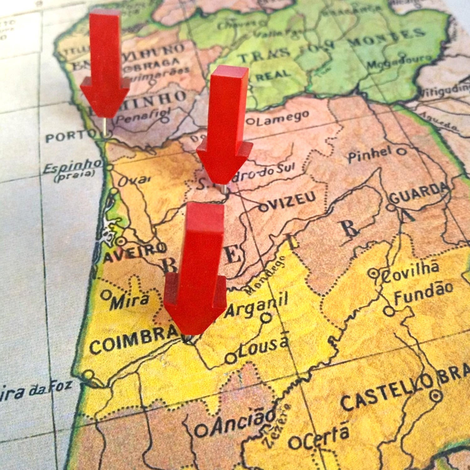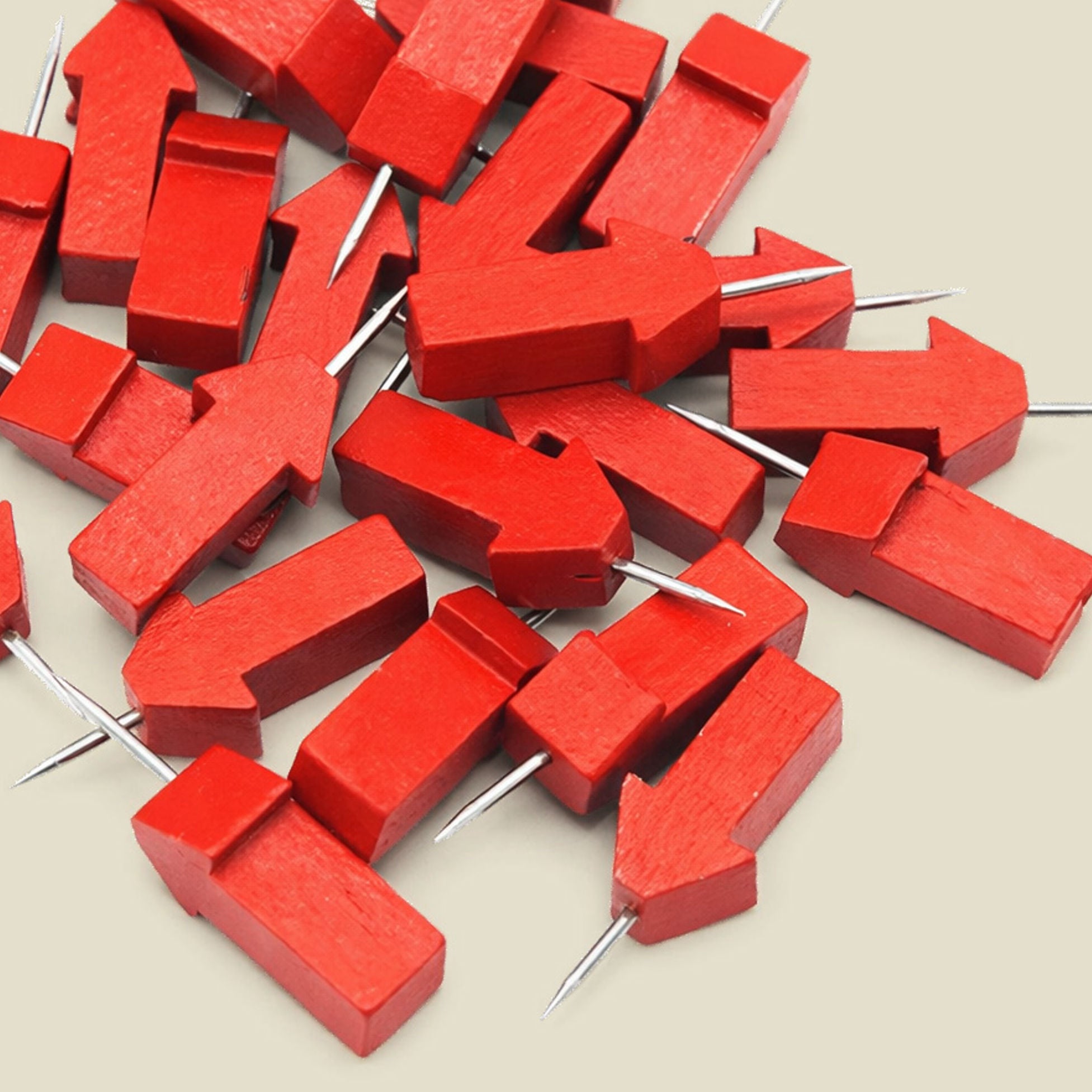 A 25-piece collection of natural wood arrow pins with vibrant red finish. Designed for marking destinations on maps and cork boards with precision and style. Durable construction suitable for both travel tracking and decorative display.